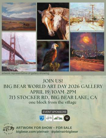 - April 19th, 10AM - 2PM - Attend the Gallery Artists will Show/Sell their work. Destination Big Bear, 713 Stocker Rd, BBL